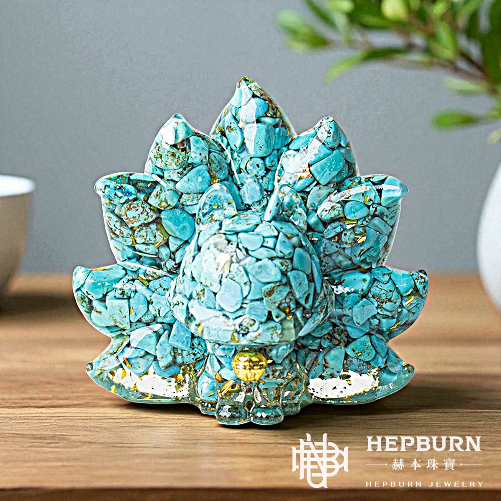 【赫本珠寶】綠松石九尾萌狐能量擺飾|守護旺運 情緒平衡|QueenDom | QueenDom