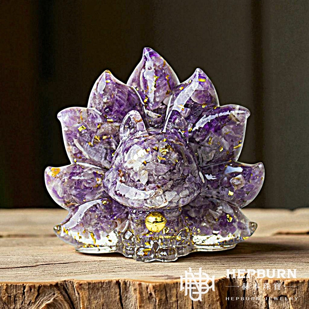 【赫本珠寶】紫水晶九尾萌狐能量擺飾|貴人守護 智慧加持|QueenDom | QueenDom