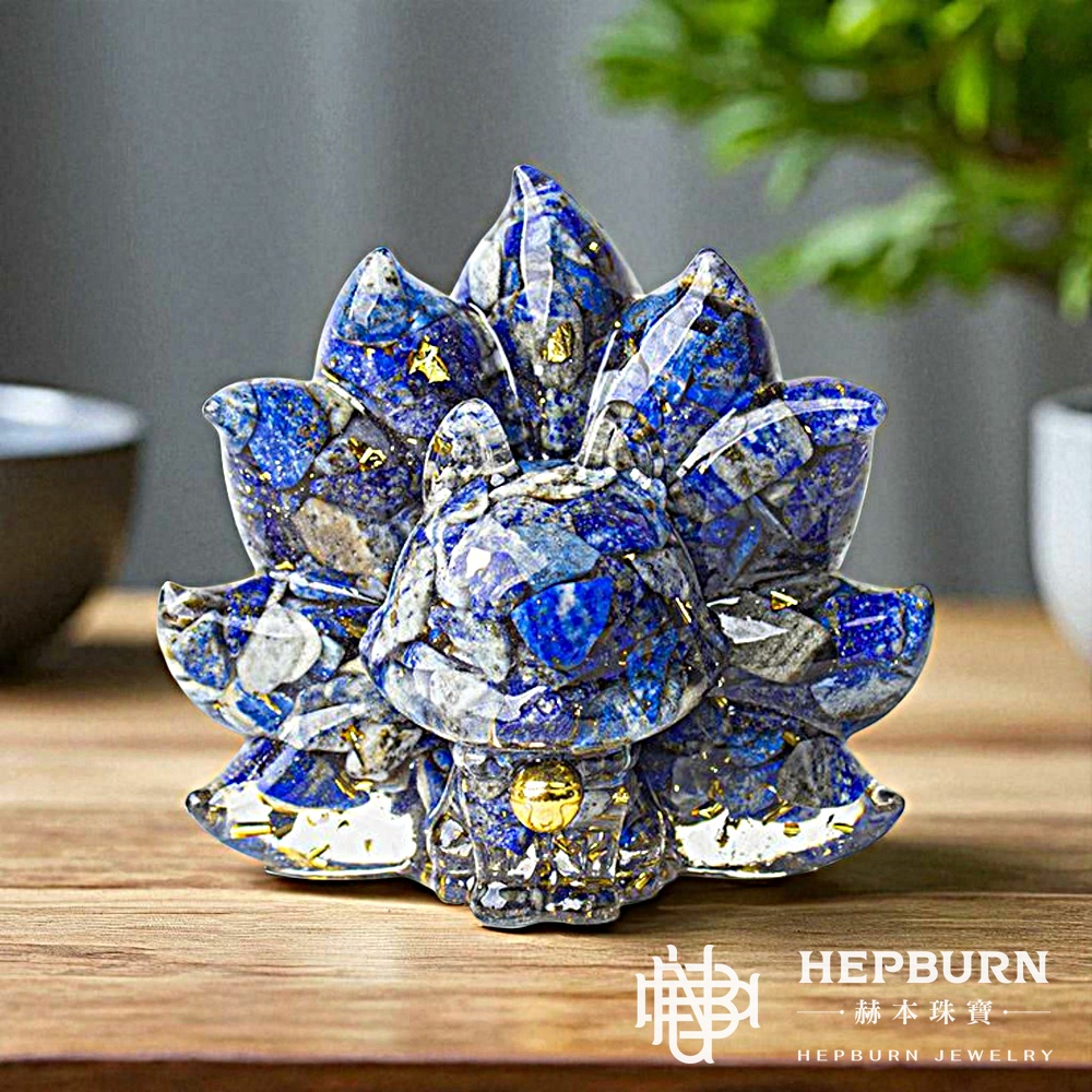 【赫本珠寶】青金石九尾萌狐能量擺飾|淨化福運 靈狐守護|QueenDom | QueenDom